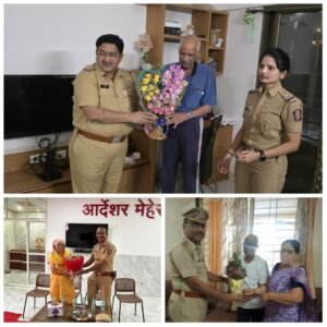 घरपोच वाढदिवस साजरा पोलीस अधिकारी आणि कर्मचारी स्वतः ज्येष्ठांच्या घरी किंवा वृद्धाश्रमात जाऊन, केक कापून आणि पुष्पगुच्छ देऊन त्यांचा वाढदिवस साजरा करत आहेत.