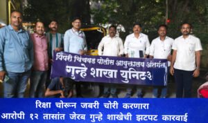 पिंपरी-चिंचवड: (प्रतिनिधी देवा भालके) शहरात रिक्षा चोरी करून त्याच वाहनाचा वापर करत जबरी चोरी व मोबाईल हिसकावणाऱ्या एका सराईत गुन्हेगाराला पिंपरी-चिंचवड गुन्हे शाखा युनिट-३ ने अवघ्या १२ तासांत अटक केली आहे. या कारवाईत आरोपीकडून १ लाख ७ हजार ५० रुपयांचा मुद्देमाल जप्त करण्यात आला असून, एकाच दिवशी घडलेले तीन गुन्हे उघडकीस आणण्यात पोलिसांना यश आले आहे.